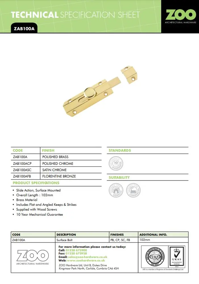 - This surface bolt is a contemporary version of the standard surface door bolt