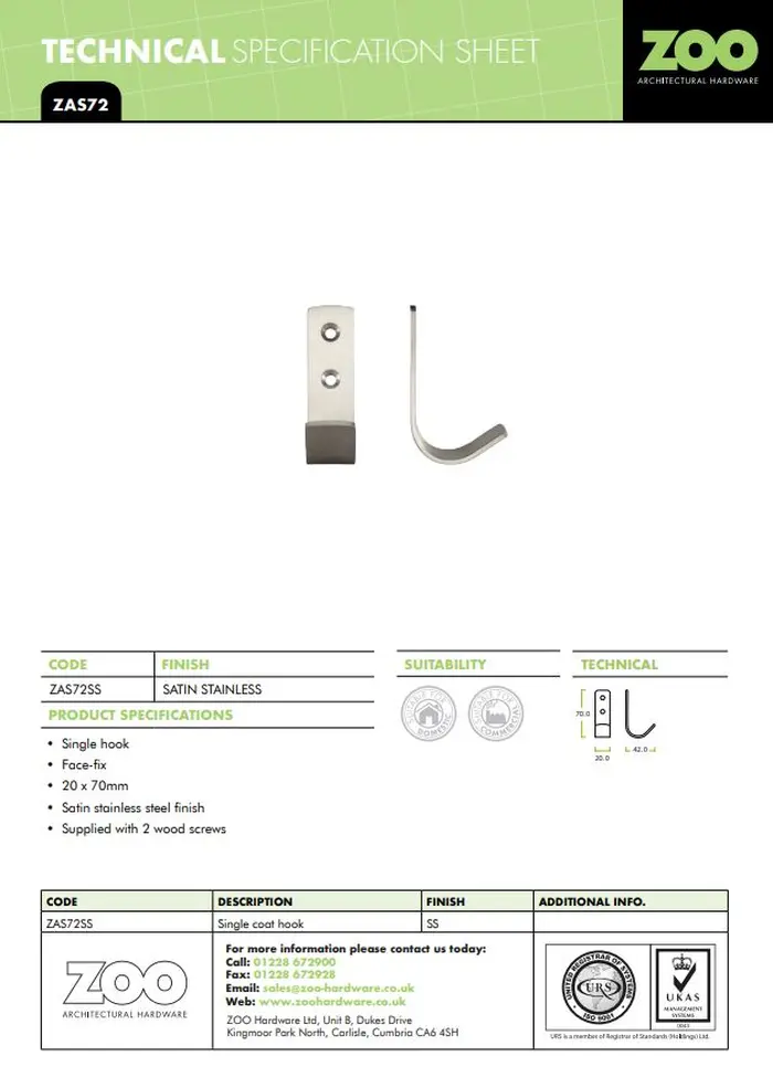Be the first to review “Zoo Hardware Zas Single Coat Hook, Satin Stainless Steel” Cancel reply
